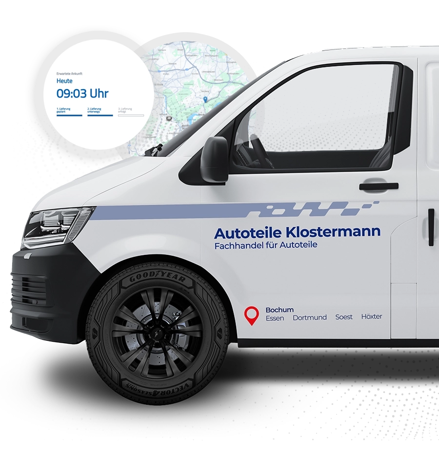 Bei Autoteile Klostermann profitieren Sie von einer hochmodernen und besonders effizienten Logistik. Mit über 35 Auslieferungsfahrzeugen – größtenteils umweltfreundlich mit Autogas unterwegs – beliefern wir Sie mehrmals täglich. Dank digitaler Tourenplanung mit Turbosoft profitieren Sie von höchster Zuverlässigkeit, pünktlichen Lieferungen und aktuellen Benachrichtigungen zum Lieferstatus.